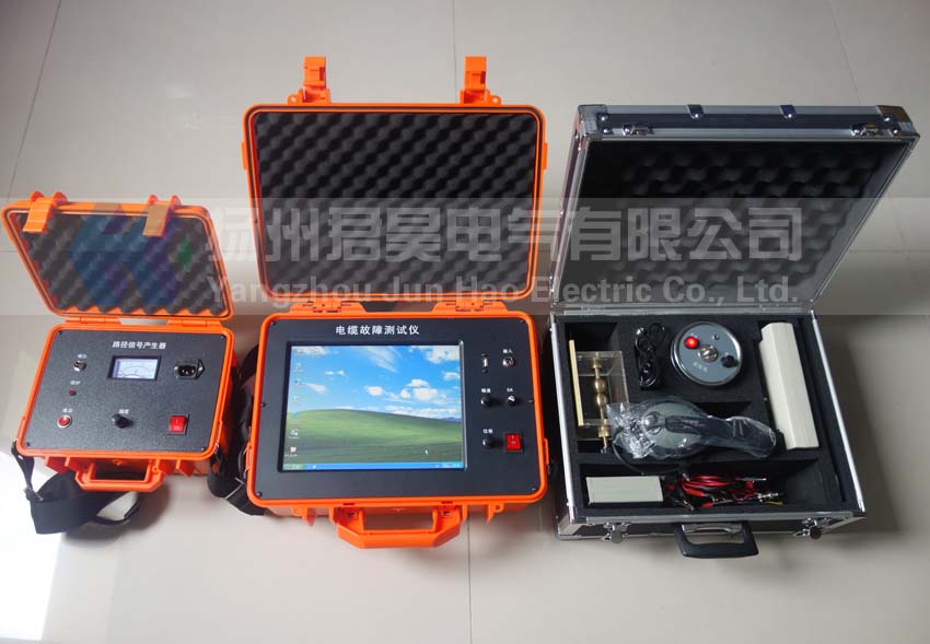 JHDL-CM型觸摸屏式電纜故障測試儀由測試主機、路徑信號產生器、路徑信號接收器和定位儀等幾部分組成。