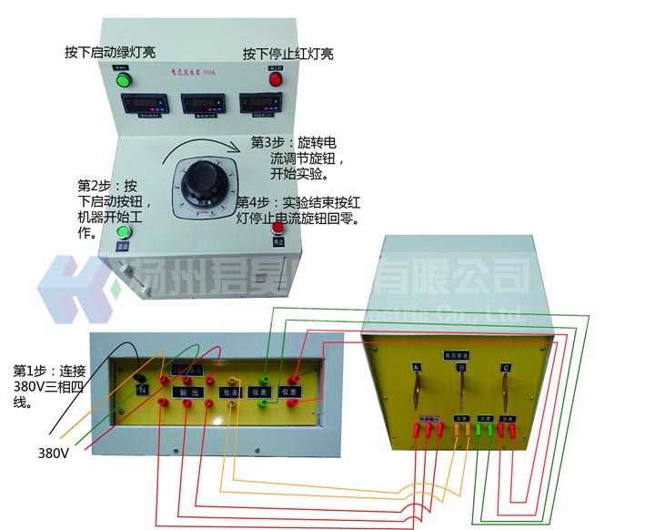 (5)該設備容量是按5分鐘短時工作設計,如用于批量試驗,工作時間應小于2.5分鐘,等待10分鐘后,再進行下次工作。如做溫升(30分鐘-24小時)應按長期工作溫升配制。