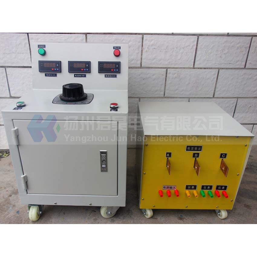 JHSLQ3三相大電流發生器(簡稱三相升流器),我公司自行研制開發的測試設備,它集國內外同類產品的優點于一身,采用數控技術,抗干擾能力強,和上一代升流器相比,由于采用低功耗、大容量的自藕調壓器和高導磁率鐵芯制作的變流器,具有輸出功率大,體積小,重量輕等優點。主要用于熱繼電器,電動機保護器,接觸器,斷器器,空氣開關,開關柜,斷路器,保護屏校驗。