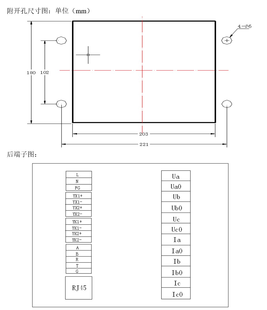 JH-612電能質量在線監測裝置開孔尺寸及后端子接線圖